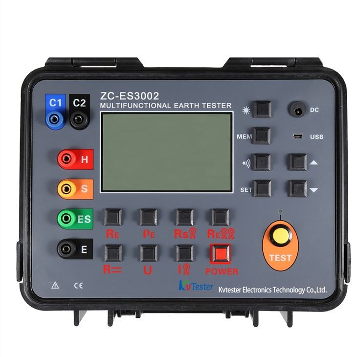 ZC-ES3002 Double clamp multi-function grounding resistance tester consists of host computer, monitoring software, test line, USB cable, and grounding pin. It has the functions of reading, checking, saving, reporting and printing of historical data.